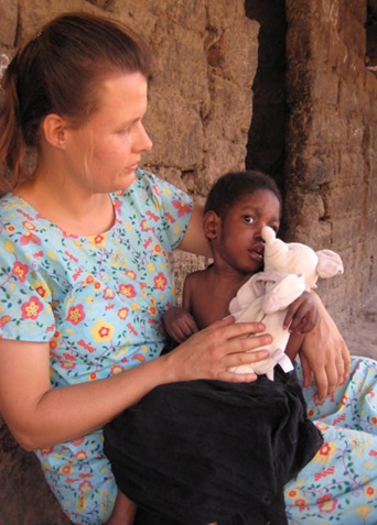Ze was gehandicapt. Haar ouders stonden onder druk van de gemeenschap: Want een kind dat niet kan praten en lopen is een slang (een geest) en moet in het bos gelegd worden! Ik probeer de ouders steeds uit te leggen dat ook gehandicapte kinderen waardevol zijn en geschapen zijn door de Heere. Met behulp van een sponsor uit Nederland ondersteunde ik dit gezin ook praktisch (melkpoeder, voedsel, buggy ed). Ook voor haar gold de oproep van de Heere Jezus: “Laat de kinderen tot Mij komen” Bij elk bezoek bad en zong ik met haar en haar familie. En zo kan ik nog wel even doorgaan om te vertellen van mijn kinderen. Zo heb ik heel wat kinderen die van de Heere Jezus mogen horen en er zijn ook nog heel wat kinderen die nauwelijks van Hem hebben gehoord, maar het nog móéten horen!!